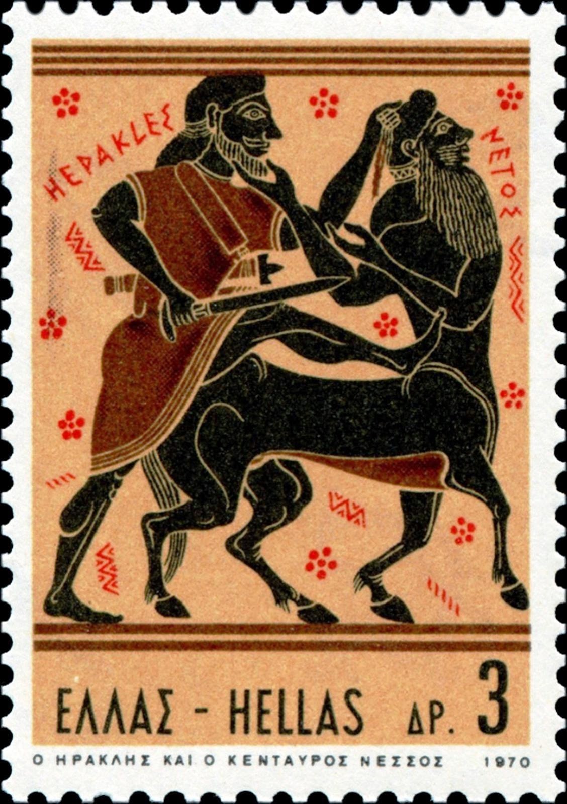 Ελεύθερος πια ο Ηρακλής παντρεύτηκε τη Δηιάνειρα, κόρη του βασιλιά της Αιτωλίας, του Οινέα. Μια µέρα πήγαν να περάσουν τον Εύηνο ποταµό. Εκεί συνάντησαν τον Κένταυρο Νέσσο. Ο Νέσσος πήρε στη ράχη του τη ∆ηιάνειρα, για να την περάσει απέναντι. Θέλησε όµως να την πάρει δική του κι άρχισε να τρέχει. Τότε ο Ηρακλής τον χτύπησε µε ένα από τα δηλητηριασµένα βέλη του. Πριν ξεψυχήσει ο Νέσσος είπε στη Δηιάνειρα: «Μάζεψε λίγο από το αίµα µου. Αν αλείψεις µ’ αυτό το χιτώνα του Ηρακλή, θα σε αγαπάει για πάντα». ![]() Έτσι, κάποτε που ο Ηρακλής ζήτησε ένα καθαρό χιτώνα από τη Δηιάνειρα, για να τον φορέσει και να κάνει θυσία στο ∆ία, εκείνη άλειψε ένα χιτώνα µε το δηλητήριο του Νέσσου και του τον έδωσε. Ο Ηρακλής τον φόρεσε κι ο χιτώνας κόλλησε πάνω του. Αµέσως άρχισε να νιώθει αβάσταχτους πόνους. Κατάλαβε τότε ότι έφτασε το τέλος του. Ανέβηκε στο βουνό Οίτη, έφτιαξε ένα σωρό από ξύλα, ξάπλωσε πάνω του και ζήτησε ν’ ανάψουν τη φωτιά. Κανείς δε δέχτηκε να το κάνει αυτό. Μόνο ο Φιλοκτήτης, που περνούσε από κει, δέχτηκε ν’ ανάψει τη φωτιά κι ο Ηρακλής, για να τον ευχαριστήσει, του χάρισε τα δηλητηριασµένα βέλη του. Ξαφνικά άρχισε ν’ αστράφτει και να βροντά. Ένα σύννεφο κατέβηκε, πήρε τον Ηρακλή και τον ανέβασε στον Όλυµπο. Εκεί συµφιλιώθηκε µε την Ήρα κι έζησε για πάντα µε τους θεούς του Ολύµπου.