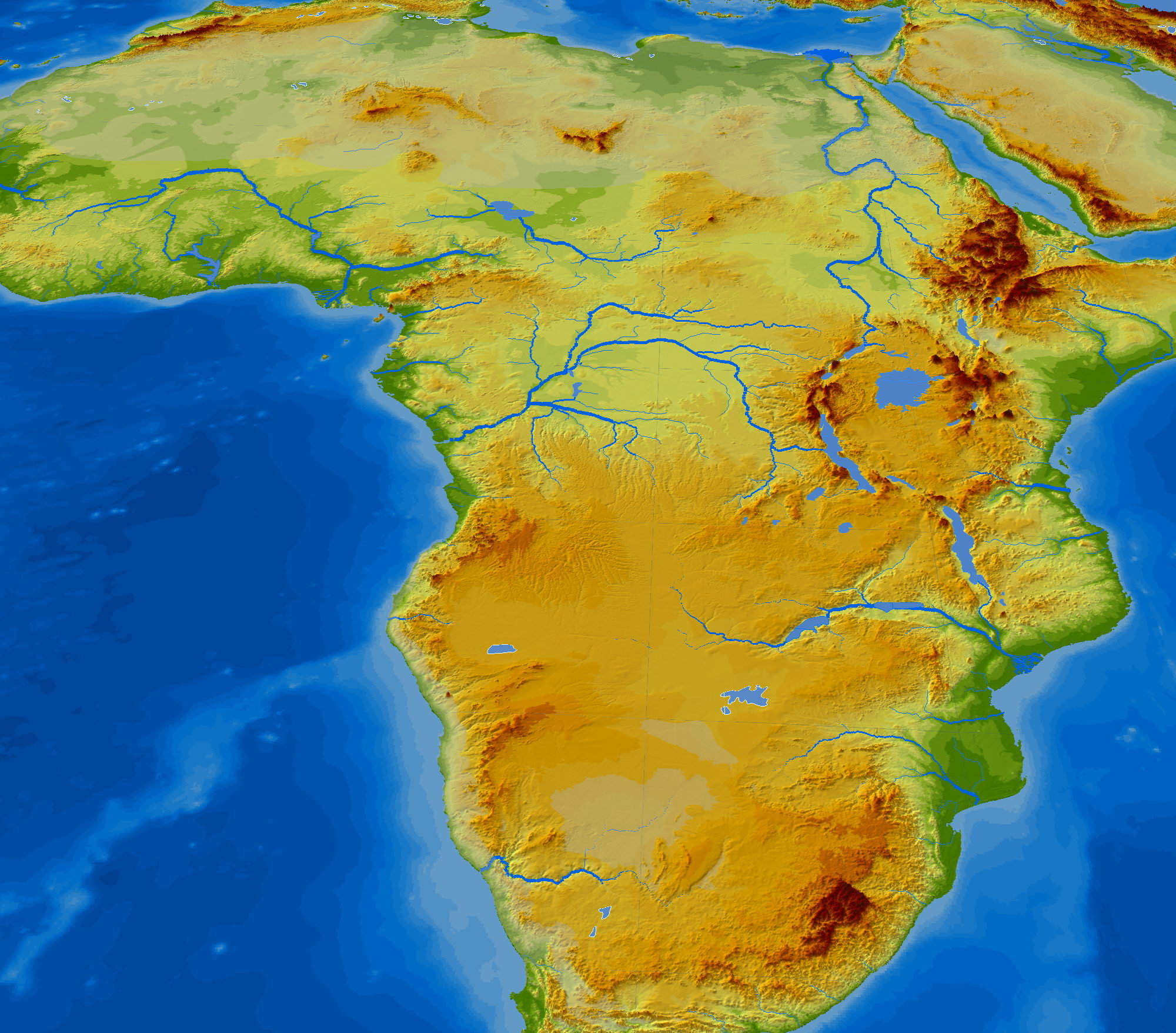 Παρατηρώντας την Αφρική από το διάστημα, διακρίνει κανείς τρεις περιοχές σ’ αυτήν: το βόρειο τμήμα της, που ορίζεται από την έρημο Σαχάρα, το κεντρικό τμήμα της, που έχει πολλά τροπικά δάση και σαβάνες, και το νότιο τμήμα της, που χαρακτηρίζεται από πιο φτωχή βλάστηση. Η θέση της Αφρικής στην υδρόγειο είναι σχεδόν συμμετρική ως προς τον Ισημερινό. Αυτό επηρεάζει σε μεγάλο βαθμό το κλίμα και την κατανομή της βλάστησης στην επιφάνειά της.