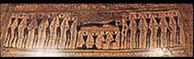 | Εικόνα 46. Μνημειακός κρατήρας από το Δίπυλο του Κεραμεικου. Στην κύρια ζώνη εικονίζεται η εκφορά του νεκρού πάνω σε άμαξα, 740 π.Χ. Αθήνα, Εθνικό Αρχαιολογικό Μουσείο. |