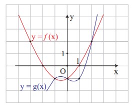 ΛΥΣΗ i) Είναι: ƒ(-3) = 2, ƒ(-2) = 0, ƒ(-1) = -1, ƒ(0 ) = -1, ƒ(1) = 0 και ƒ(2) = 2. ii) Οι ρίζες της εξίσωσης ƒ(x) = 0 είναι οι τετμημένες των κοινών σημείων της γραφικής παράστασης της f και του άξονα x'x, δηλαδή οι αριθμοί x1 = -2 και x2 = 1. Οι ρίζες της εξίσωσης ƒ(x) = 2 είναι οι τετμημένες των σημείων της γραφικής παράστασης της ƒ που έχουν τεταγμένη 2, δηλαδή οι αριθμοί x1 = -3 και x2 = 2 . Οι ρίζες της εξίσωσης ƒ(x) = g(x) είναι οι τετμημένες των κοινών σημείων των γραφικών παραστάσεων των συναρτήσεων ƒ και g , δηλαδή οι αριθμοί x1 = -1, x2 = 0 και x3 = 2 . iii) Οι λύσεις της ανίσωσης ƒ(x) > 0 είναι οι τετμημένες των σημείων της γραφικής παράστασης της ƒ που βρίσκονται πάνω από τον άξονα x'x, δηλαδή όλα τα x$\in$(-∞, -2) $\cup$ (1, +∞). Οι λύσεις της ανίσωσης ƒ(x) > g(x) είναι οι τετμημένες των σημείων της γραφικής παράστασης της ƒ που βρίσκονται πάνω από τη γραφική παράσταση της g , δηλαδή όλα τα x$\in$(-∞, -1) $\cup$ (0,2). |