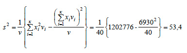 β) Για τον υπολογισμό της τυπικής απόκλισης είναι προτιμότερο να εφαρμόσουμε τη σχέση (4), μιας και η μέση τιμή δεν είναι ακέραιος αριθμός. Με βάση τον παραπάνω πίνακα η διακύμανση της μεταβλητής Χ είναι:
